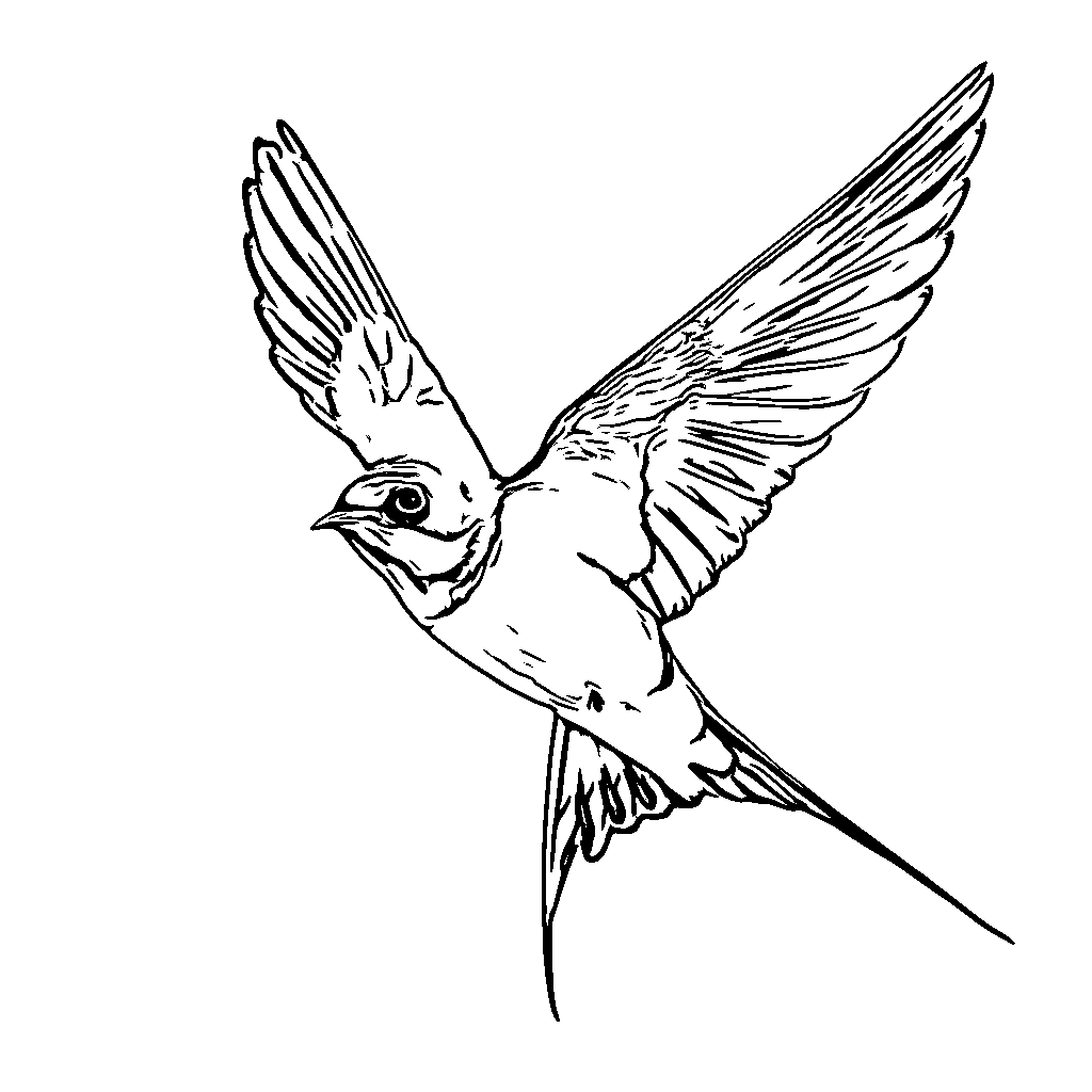 Detailed feathers and dynamic motion captured in flowing, natural line work—perfect for birds in flight