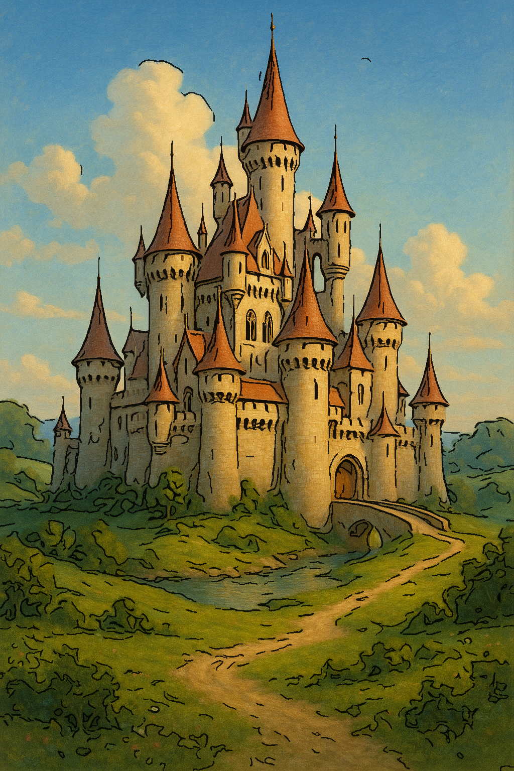 Majestic castles and complex scenery transformed into storybook-style illustrations with perfect depth